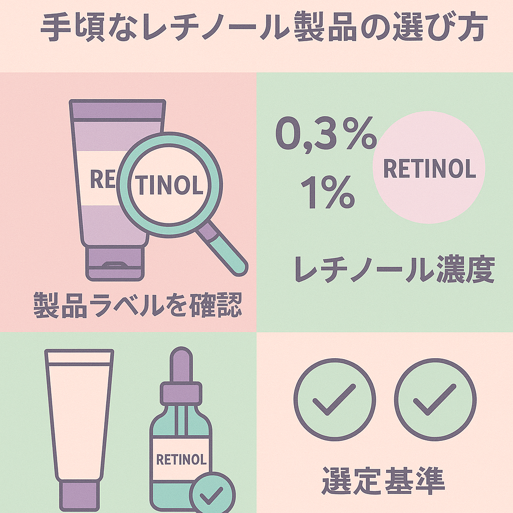 - 低〜中濃度(0.1%〜0.5%): レチノールに慣れてきた方向け